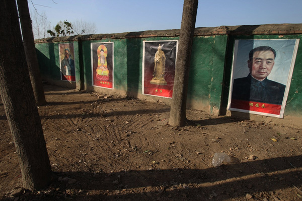 校园里墙壁上挂着“孔子”、“释迦牟尼”、“老子”、“周恩来”的画像。