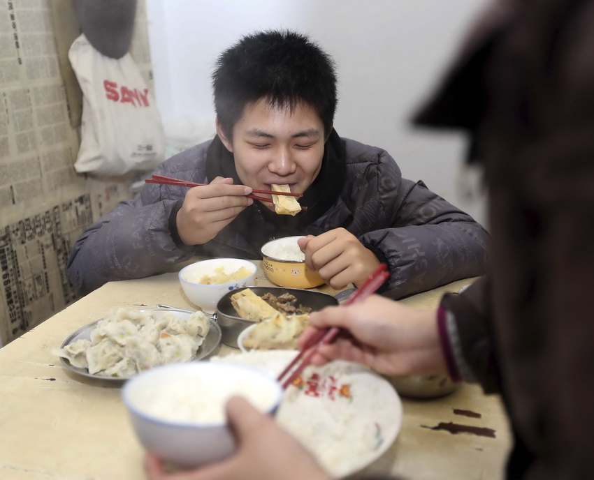 骨髓移植手术前一晚,妈妈为王一竹做了他爱吃的饭菜(2月26日摄)