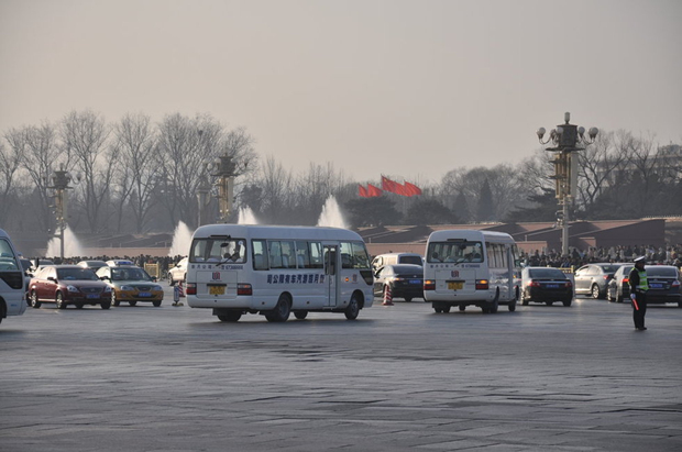 2013年3月3日,北京长安街,全国政协十二届一次会议开幕式结束后,政协代表的车辆行驶在长安街上,并没有警车带道。