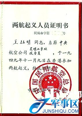 两航起义人员证明