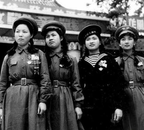 50年代:解放军陆海空三军女战士。
