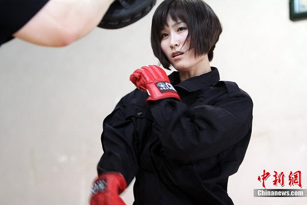 5月22日下午,在南方航空公司吉林分公司训练基地,9名女性航空安全员正在进行特训。据悉,这是东北地区首批女性航空安全员,她们在经过训练后,将于2012年6月正式登机执行任务。图为擒拿训练。
